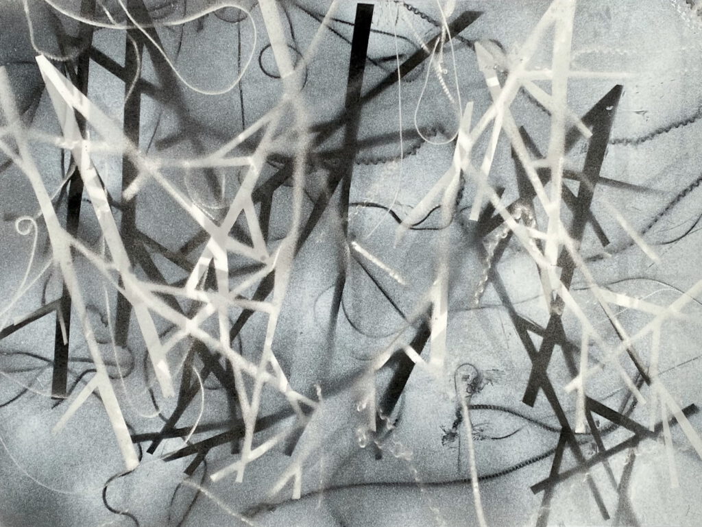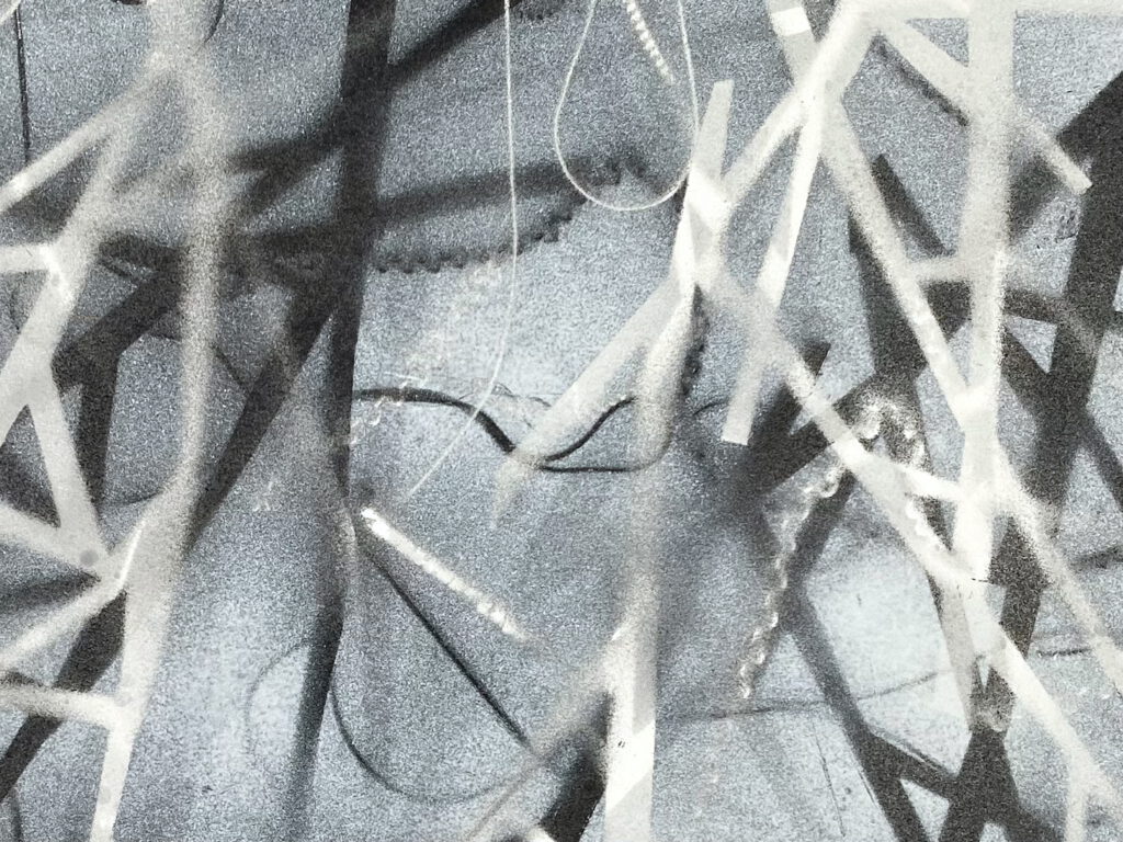 Das Bild aus Papier erscheint wie eine Nahaufnahme der Bestandteile und macht ihre Verflechtung deutlich.